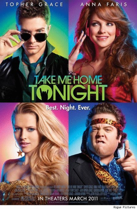 As the summer of 1988 winds down, three friends on the verge of adulthood attend an out-of-control party in celebration of their last night of unbridled youth. Starring Topher Grace, Anna Faris, Dan Fogler and Teresa Palmer, Take Me Home Tonight is a raunchy, romantic and ultimately touching blast from the past set to an awesome soundtrack of timeless rock and hip-hop hits. Recent MIT grad Matt Franklin (Topher Grace) should be working for a Fortune 500 company and starting his upward climb to full-fledged yuppie-hood. Instead, the directionless 23-year-old confounds family and friends by taking a part-time job behind the counter of a video store at the Sherman Oaks Galleria. But Matt's silent protest against maturity comes to a screeching halt once his unrequited high school crush, Tori Frederking (Teresa Palmer), walks into the store. When she invites him to an epic, end-of-summer party, Matt thinks he finally might have a chance with the girl of his dreams. With his cynical twin sister Wendy (Anna Faris) and best friend Barry (Dan Fogler), Matt embarks on a once-in-a-lifetime evening. From stealing a car to a marriage proposal to an indescribable, no-holds-barred dance-off, these friends share experiences that will change the course of their lives on one unforgettable night in the Go-Go '80s.